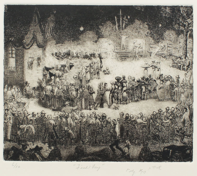 HILL, Polly Knipp, (American, 1900-1990): ''Fish Fry'', Etching, sight size 10 1/2'' x 11 3/4'', signed lower right, titled and numbered 6/10, framed, 17 1/2'' x 19''.