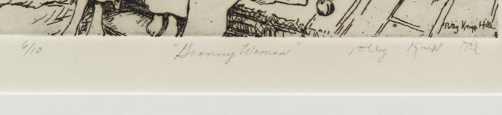 HILL, Polly Knipp, (American, 1900-1990): ''Granny Woman'', Etching, sight size 9 1/2'' x 11 1/4'', signed, titled and numbered 6/10, framed, 17'' x 18 1/2''.