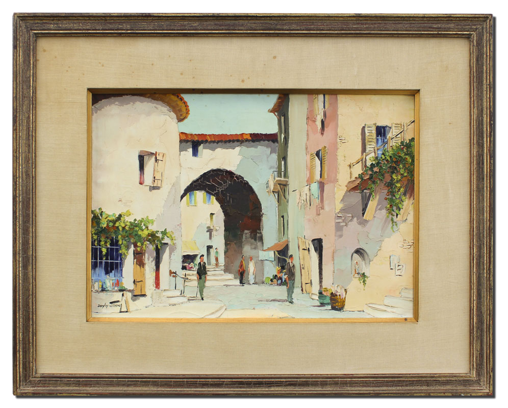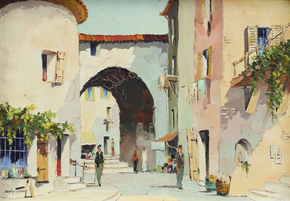 DOYLY, John, (British, 1906-1993): European Street Scene, Oil/Canvas, 14 1/2'' x 21 1/2'', signed lower left, framed, 24'' x 30 1/2''.