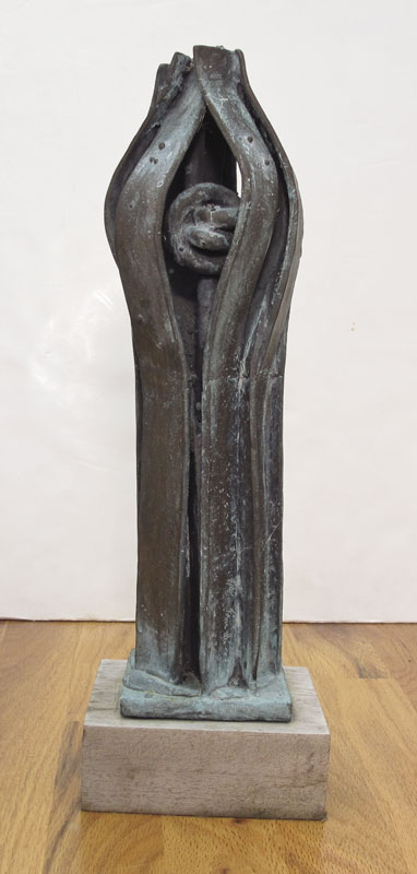 MODERNIST BIOMORPHIC BRONZE: 13 1/2'' h., no visible signature, rests on a wooden base 2'' h.