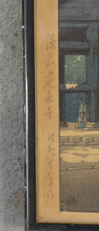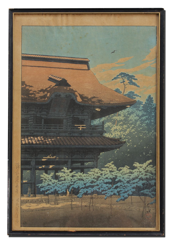 HASUI, Kawase, (Japanese, 1883-1957): ''Kenchogi Temple, Kamakura'', Woodblock, sight size 15 1/4'' x 10 1/8'', framed, 17'' x 12''.