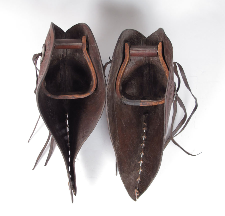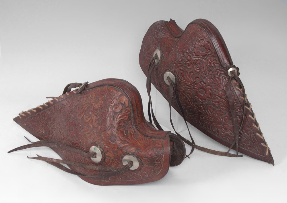 VINTAGE TOOLED LEATHER TAPADERO: Leather hood / stirrup cover.
