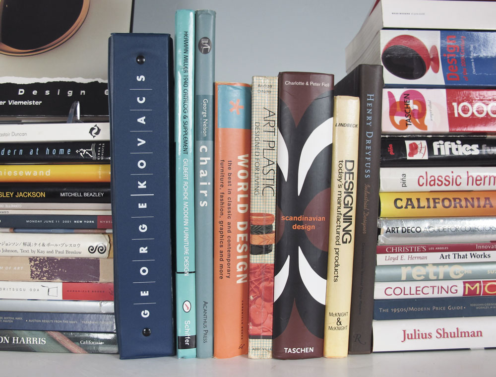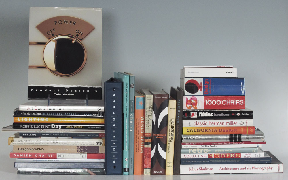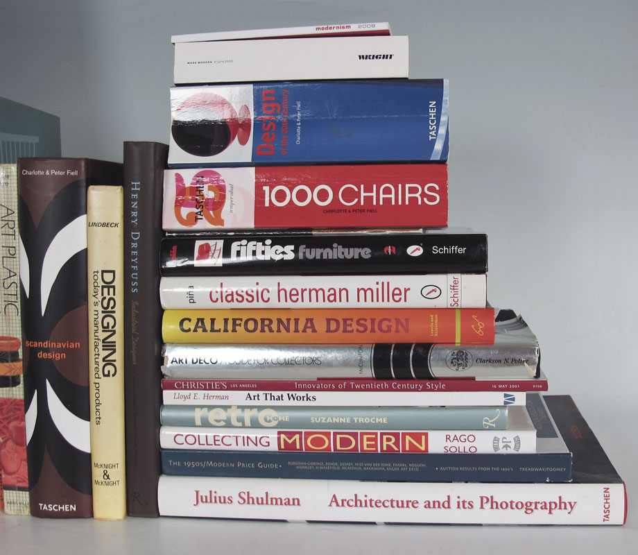 35 REFERENCE BOOKS ON MID CENTURY DESIGN: Approx. 35 reference books and pamphlets on Mid-Century furniture, architecture, and design in all forms.
