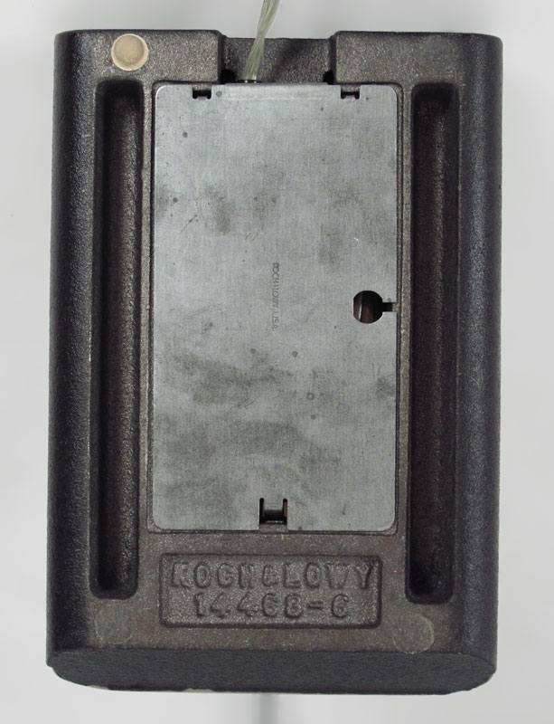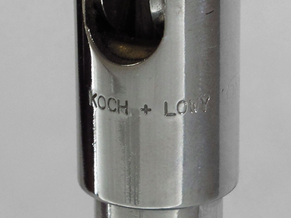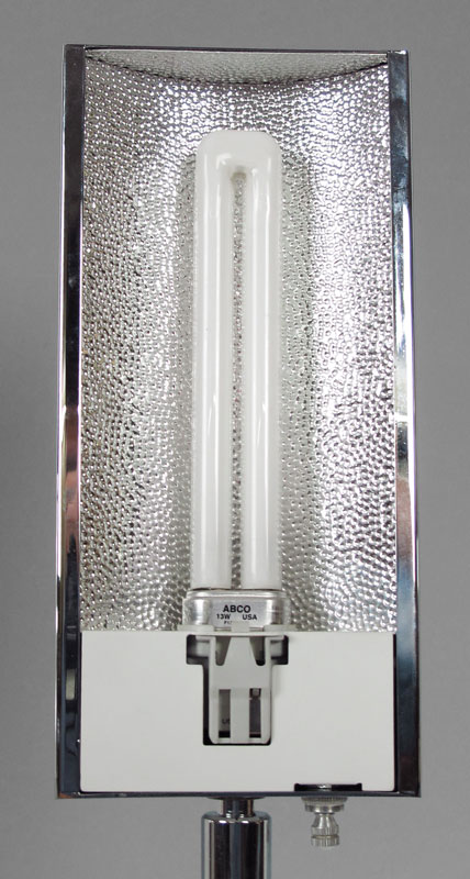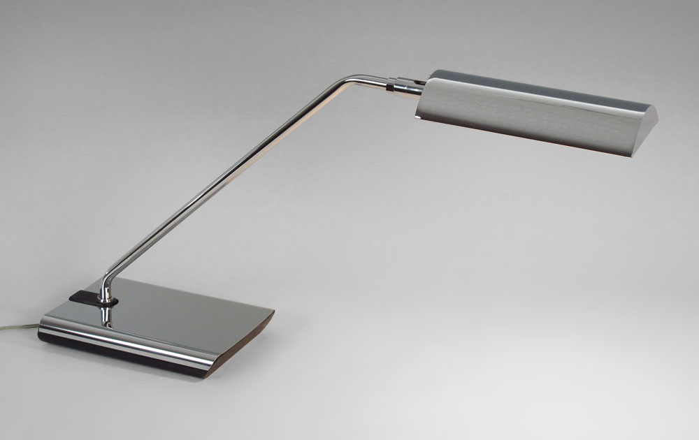 KOCH AND LOWY LAMP: Weighted rectangular base, long arm and half cylinder shade. Approx. 14'' tall, 14668-6