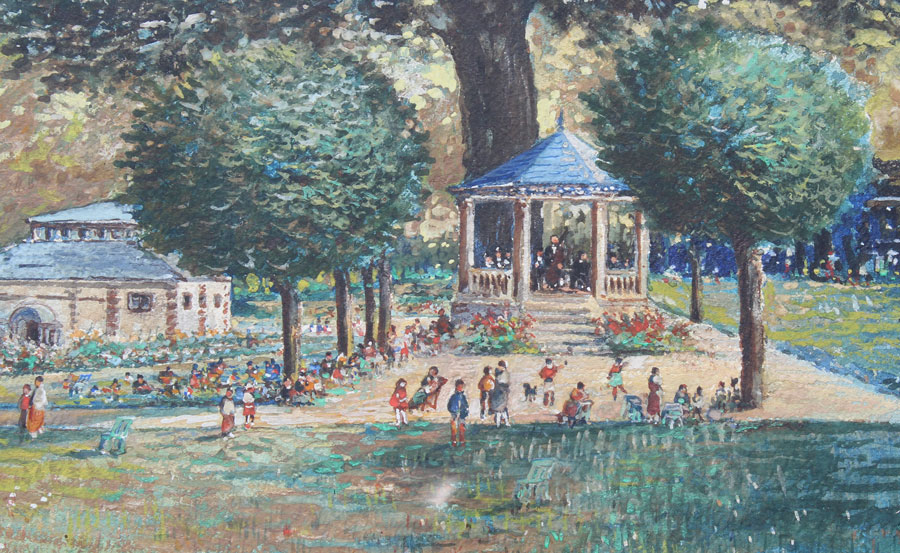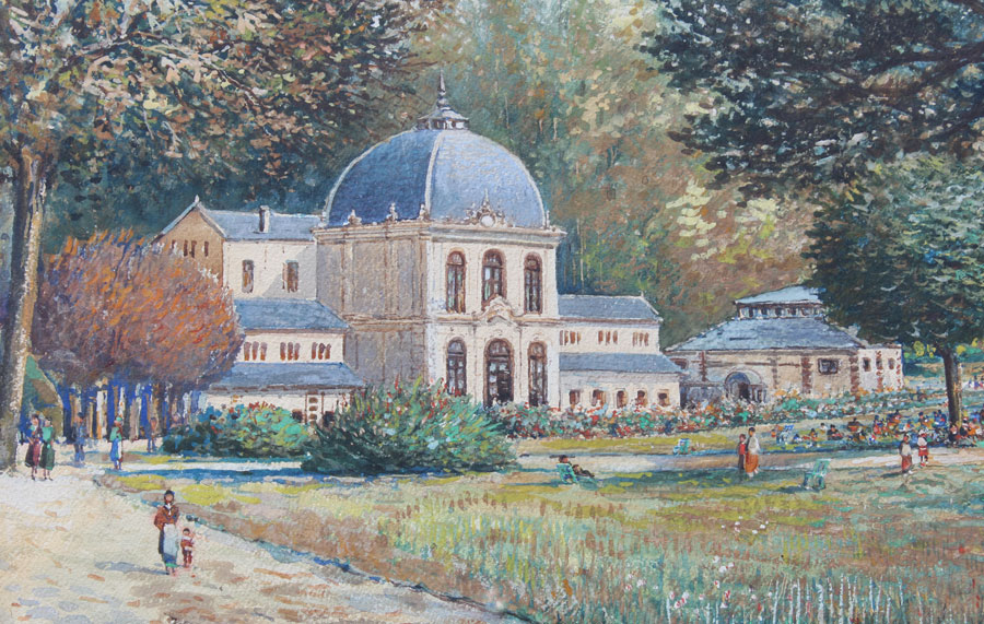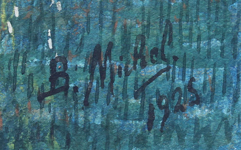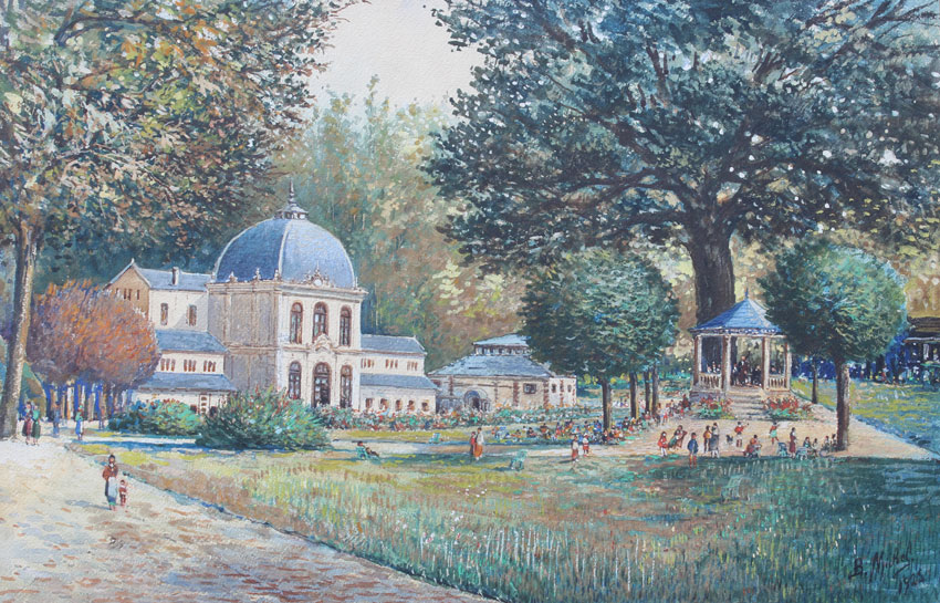 Michel, B., (European, 20th C): Village Scene With Figures Around the Town Square, Watercolor, signed lower right 'V. Michel', dated 1925, sight size, 13 1/2'' x 21 1/4'', encased in gilded frame, 25 1/2'' x 31''.