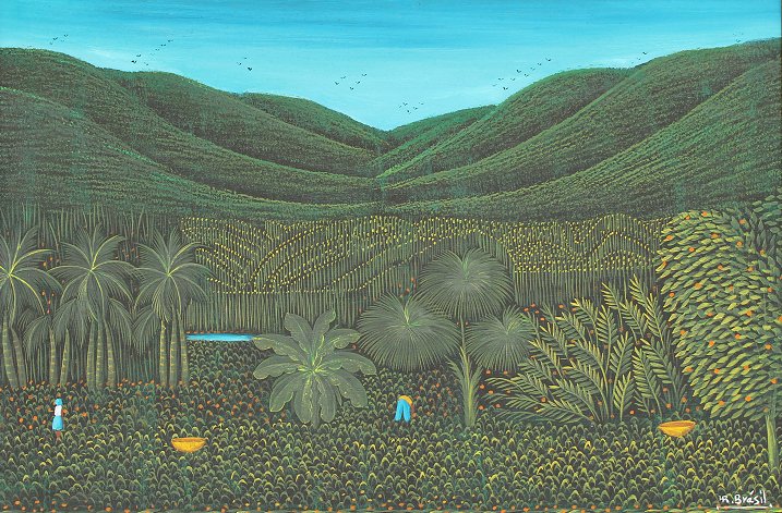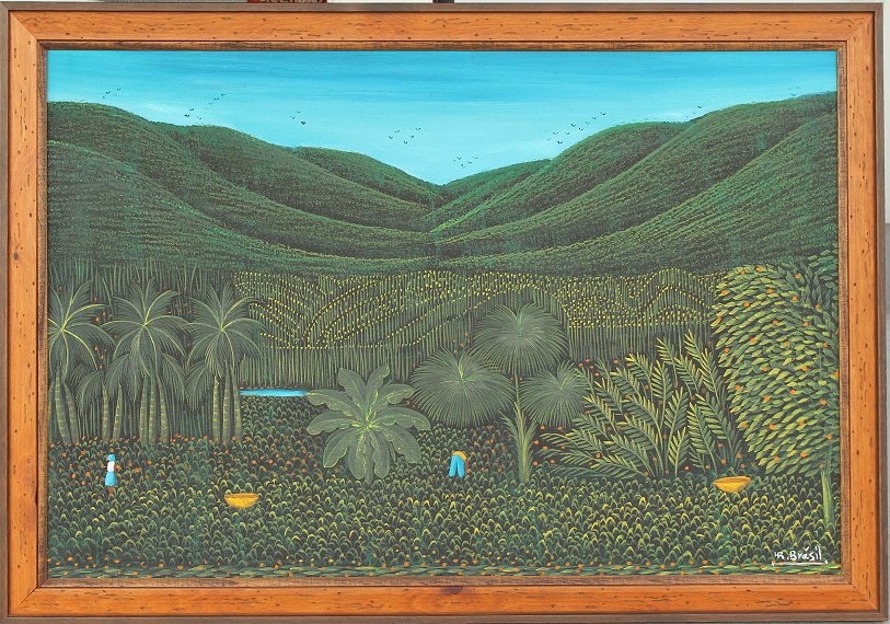 BRESIL, Henri-Robert, (Haitian, 1952-1999): Workers in the Field, a Haitian Landscape, Oil/Canvas, 24'' x 36'', signed lower right, framed, 36'' x 42''.