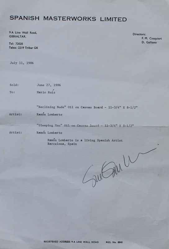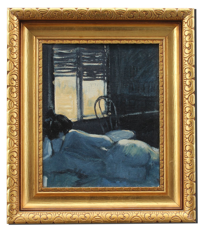 LOMBARTE, Ramon, (Spanish): Reclining Nude, Oil/Board, 11'' x 9 1/2'', gilded and carved frame, 15 1/2'' x 13 1/2'', comes with original paperwork from Spanish Masterworks, Ltd.