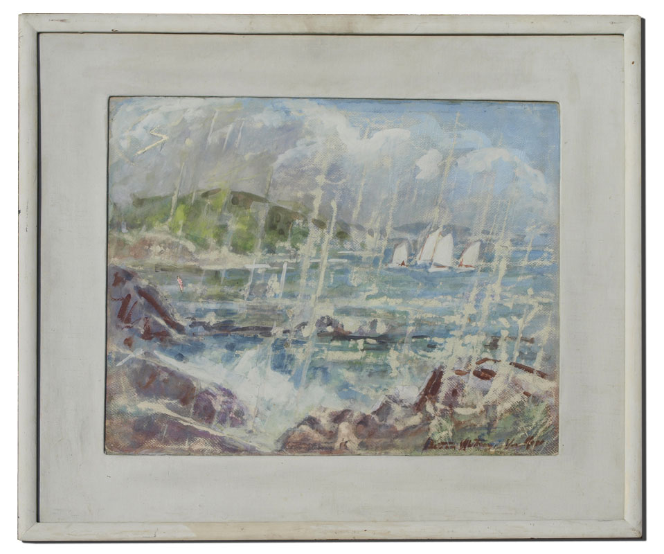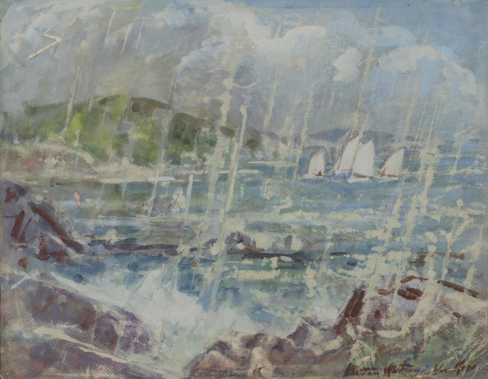 VAN NESS, Beatrice Whitney, (American, 1888-1981): ''Scudding for Home'', Transparent Watercolor and Tempera, 19'' x 25'', signed lower right, framed 29'' x 34''.
