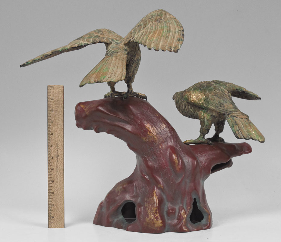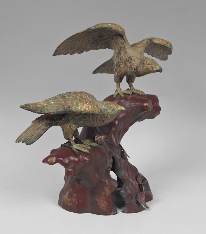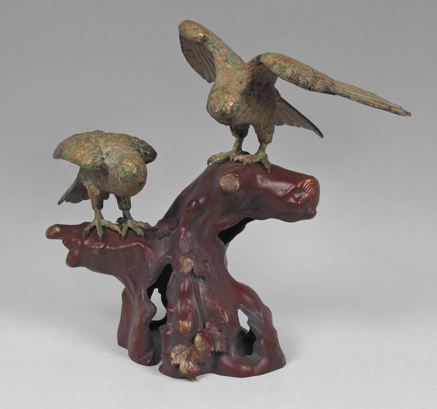 EAGLE SCULPTURE: Gilt and patinated eagles, 19''h. x 16''.