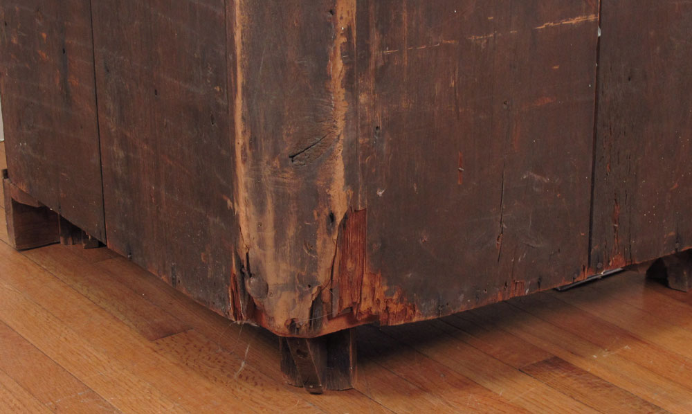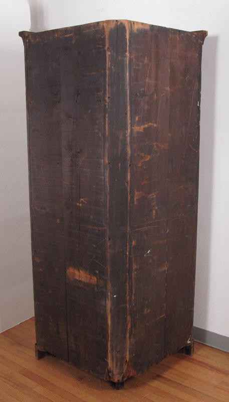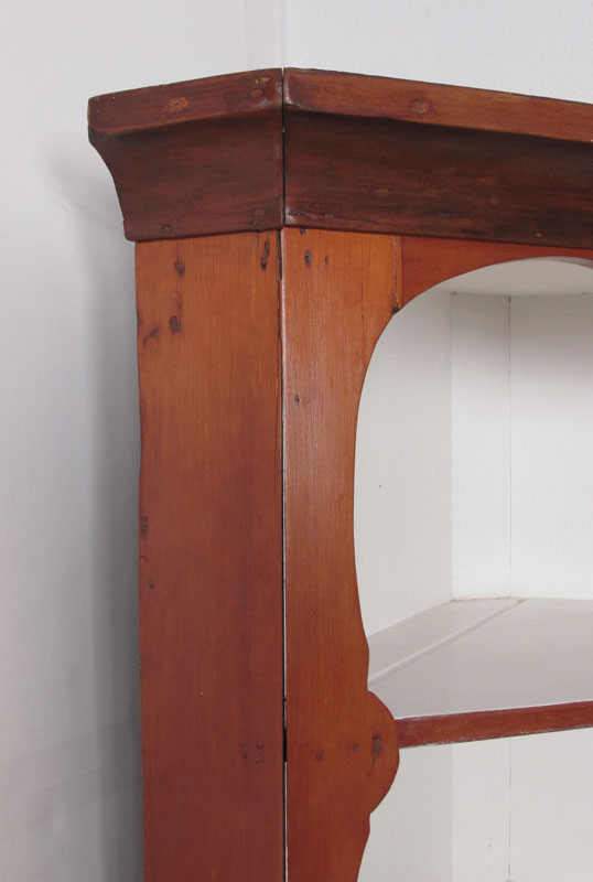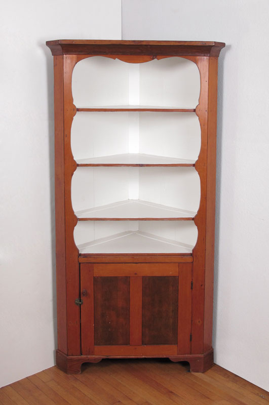 19TH C AMERICAN COUNTRY CORNER CABINET: 3 upper shelves over single door with single interior shelf. 77'' h. x 42'' x 22''.