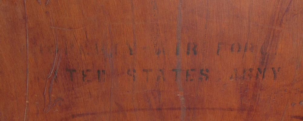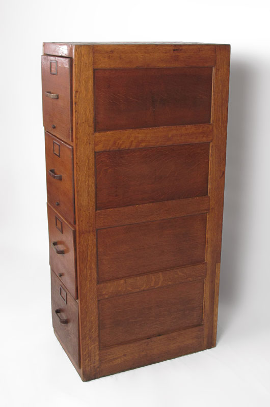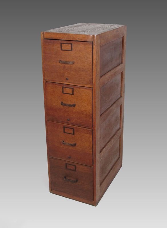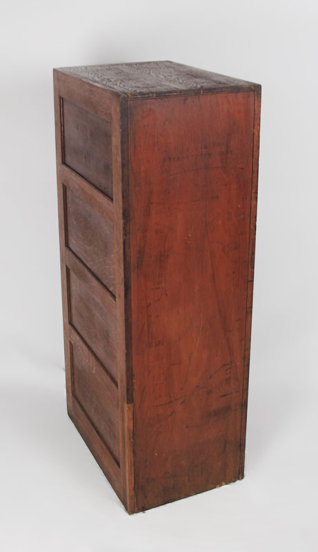 4 DRAWER OAK FILE CABINET: Marked Property Air Force, United States Army on back. Measures 52 1/2'' h. x 16 1/2'' x 26 1/2''.