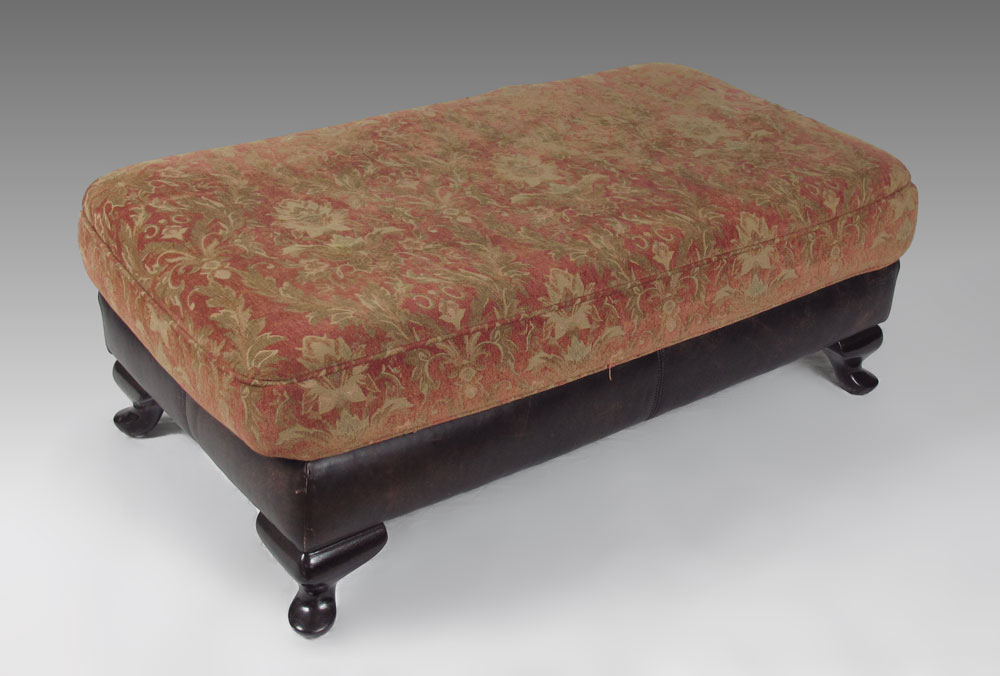 BERNHARDT LEATHER OTTOMAN: Matching ottoman to previous 2 lots 229 & 229A. 17 1/2'' h. x 46 1/2'' x 24 1/2''.