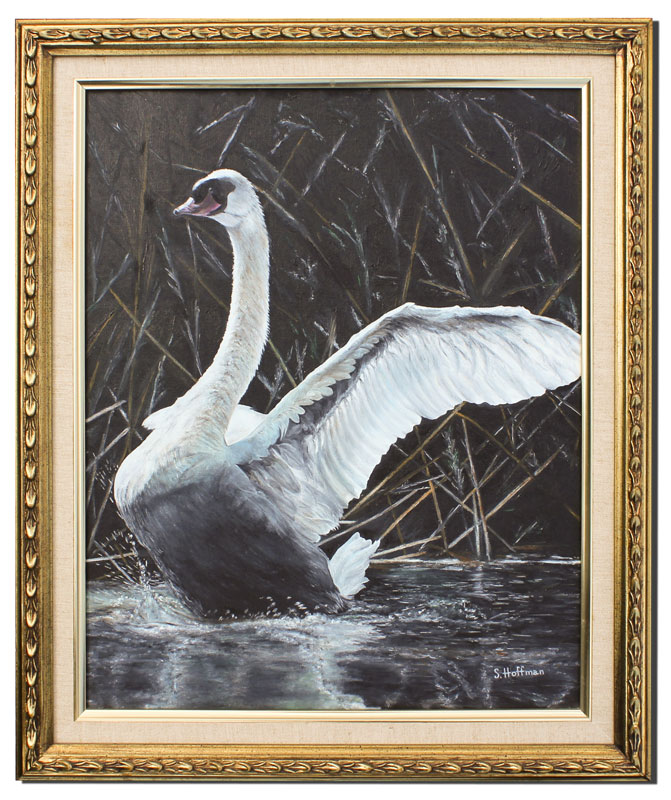 HOFFMAN, Shirley, (American, 20th C.): Swan, Oil/Canvas, 20'' x 16'', signed lower right 'S. Hoffman', framed, 24'' x 20''.