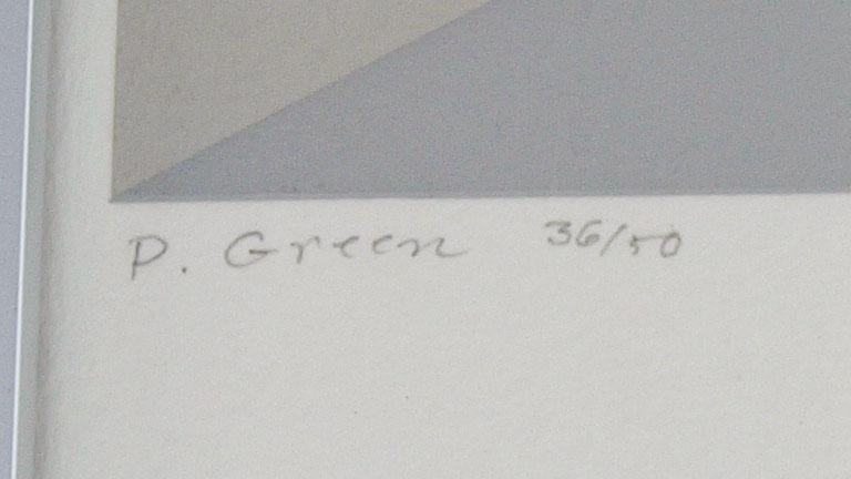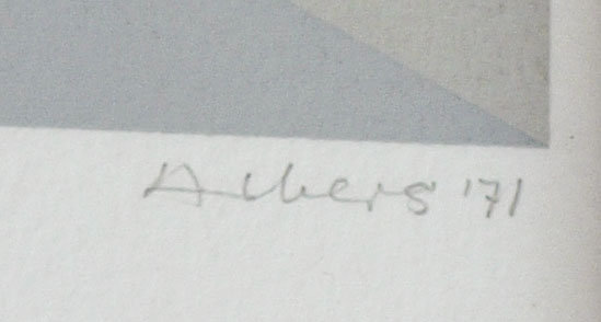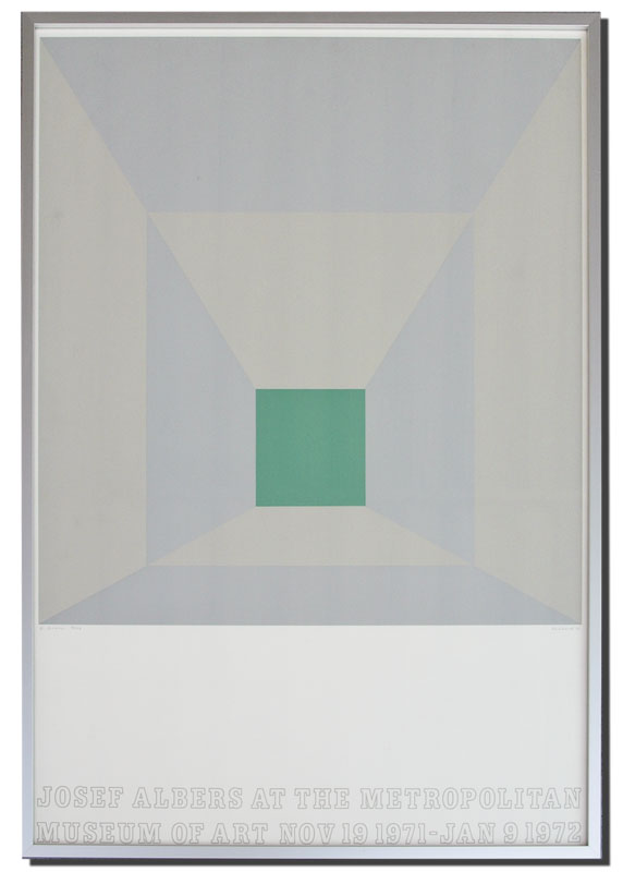 JOSEPH ALBERS AT THE METROPOLITAN MUSEUM OF ART NOVEMBER 19, 1971 THRU JANUARY 9, 1972 EXHIBITION POSTER: Limited Edition Screen Print, titled ''P. Green'', sight size 27 3/4'' x 20 1/4'', pencil signed lower right and dated '71, titled lower left and numbered 36/50, modern metal frame, 28 3/4'' x 21 1/4''.