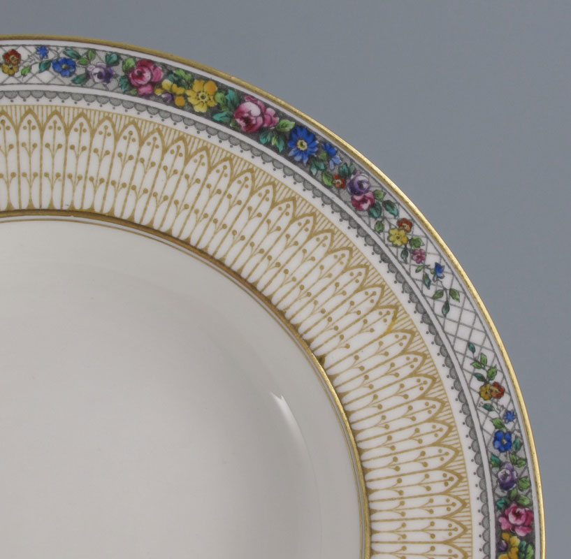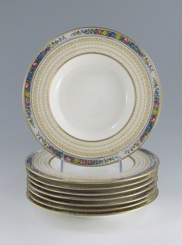 SET OF 8 CAULDON FOR TIFFANY AND CO. BOWLS: Floral design rim with gilt accent interior rim. Marked Cauldon Ltd. England, Tiffany & Co. New York. 9 1/4'' dia.