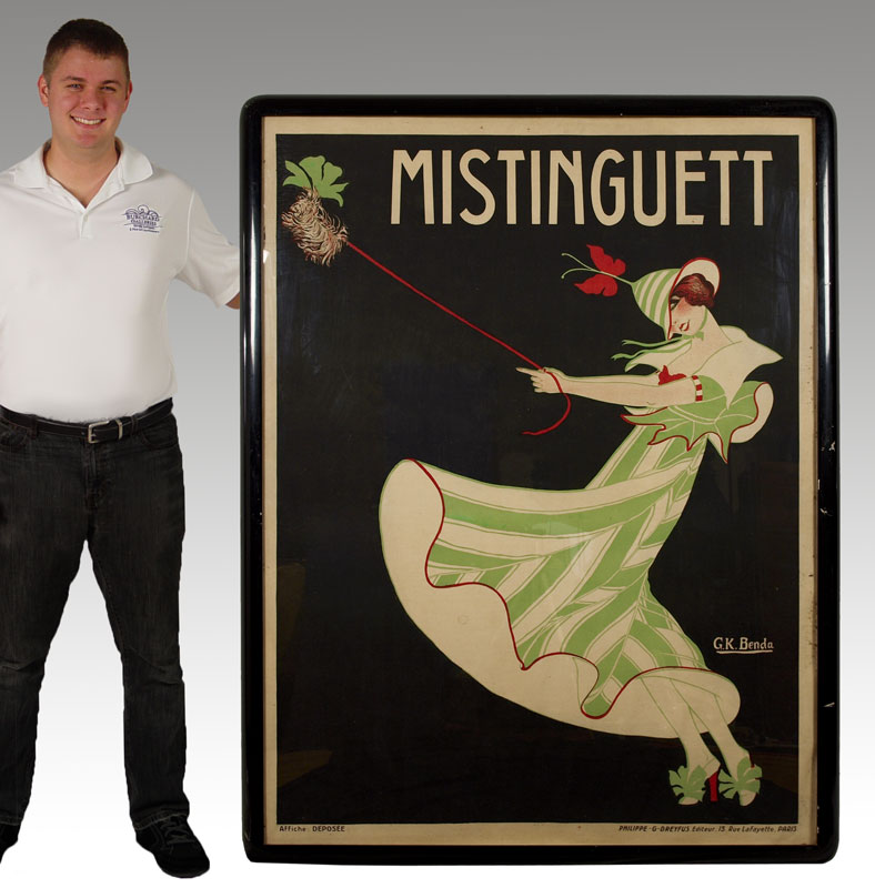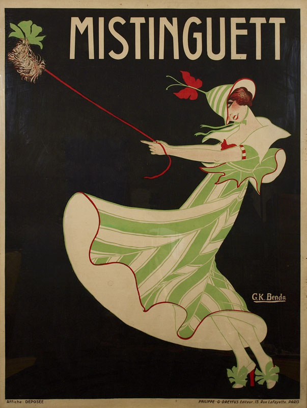 G.K. BENDA MISTINGUETTE VINTAGE POSTER: Printed by Phillip G. Dryfus, Editeur, 13 Rue Layfette, Paris. Sight size 61'' x 46 1/4'', lacquer framed under plastic 65 1/4'' x 50''.