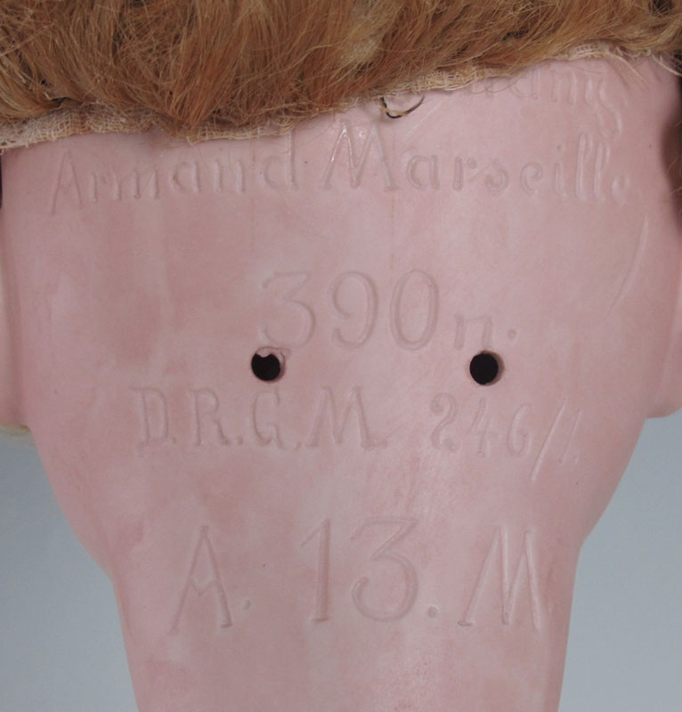 LARGE 26'' ARMAND MARSEILLE GERMAN BISQUE HEAD DOLL: Marked ''Armand Marseille 3902 DRGM 246/1 A.13.M.''. Sleepy blue eyes, open mouth with teeth, dimple on her chin. 26'' tall.