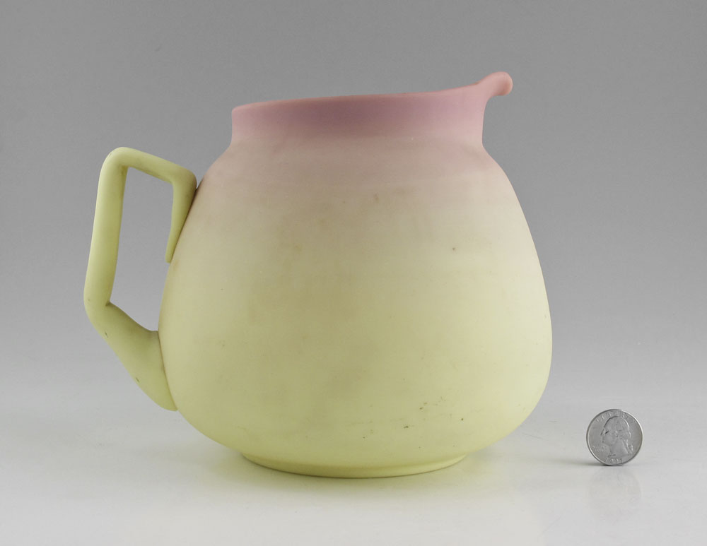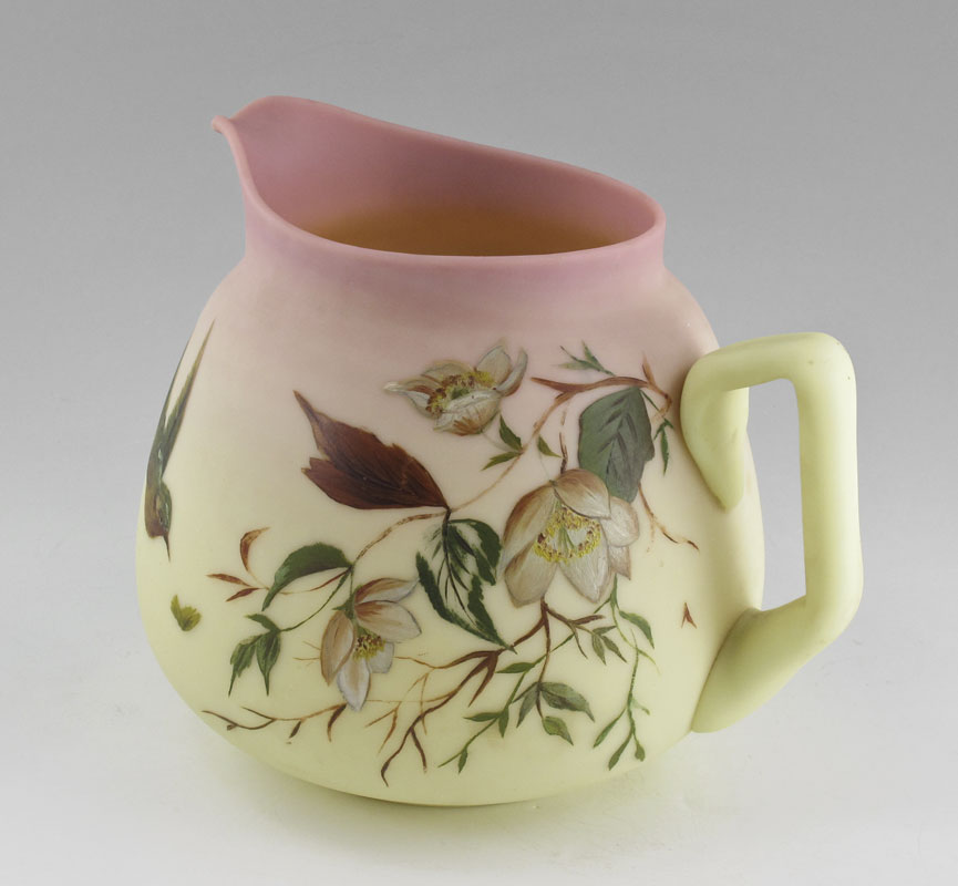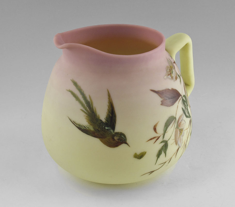 MT WASHINGTON BURMEESE EGYPTIAN PITCHER: Hand painted bird and flower design, approx. 6 3/4'' h.