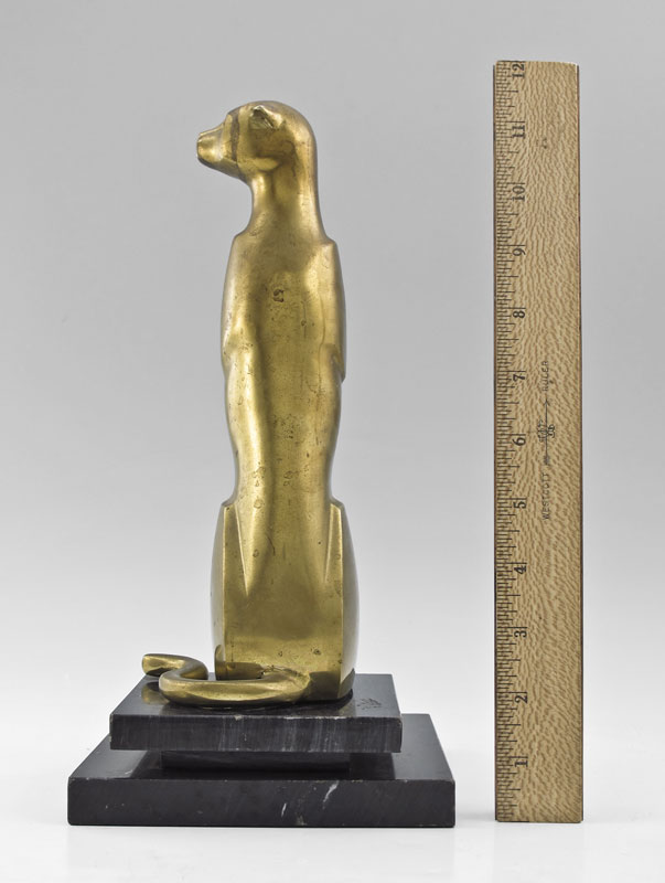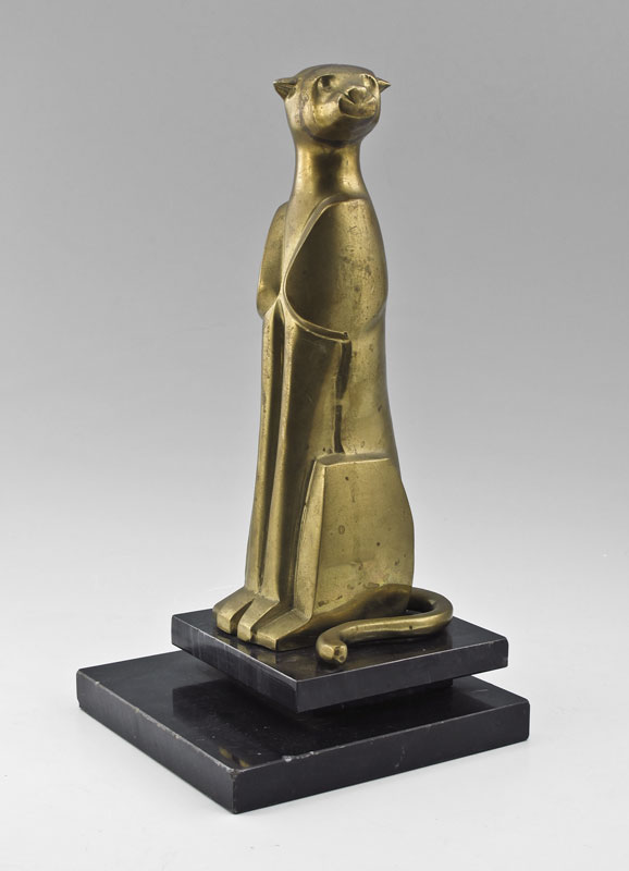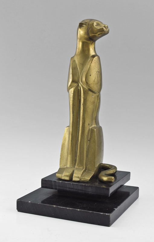ART DECO DORE BRONZE CHEETAH SCULPTURE: 10'' h., no visible signature, mounted on a multi-piece marble plinth, 1 3/4'' h.