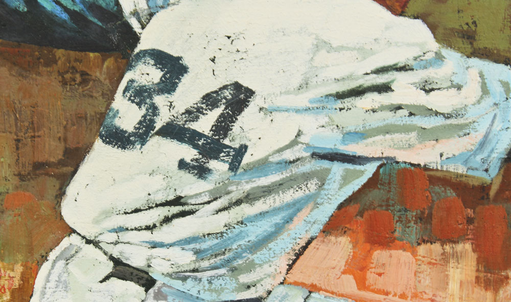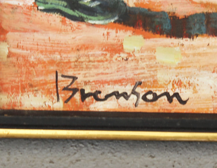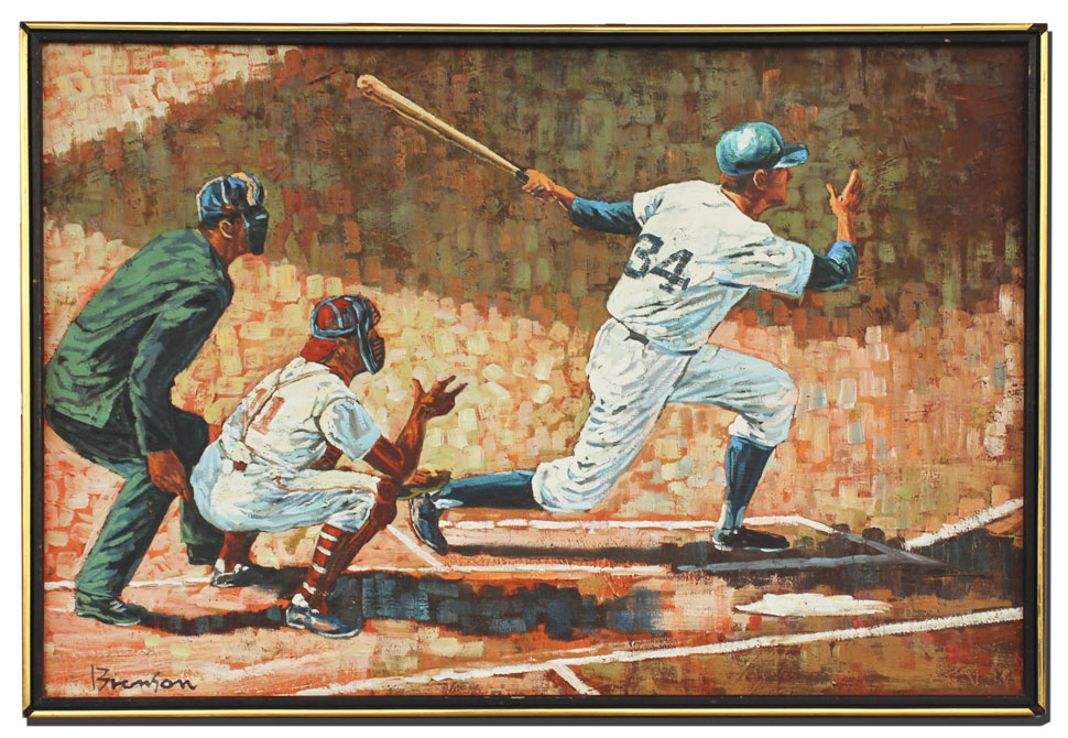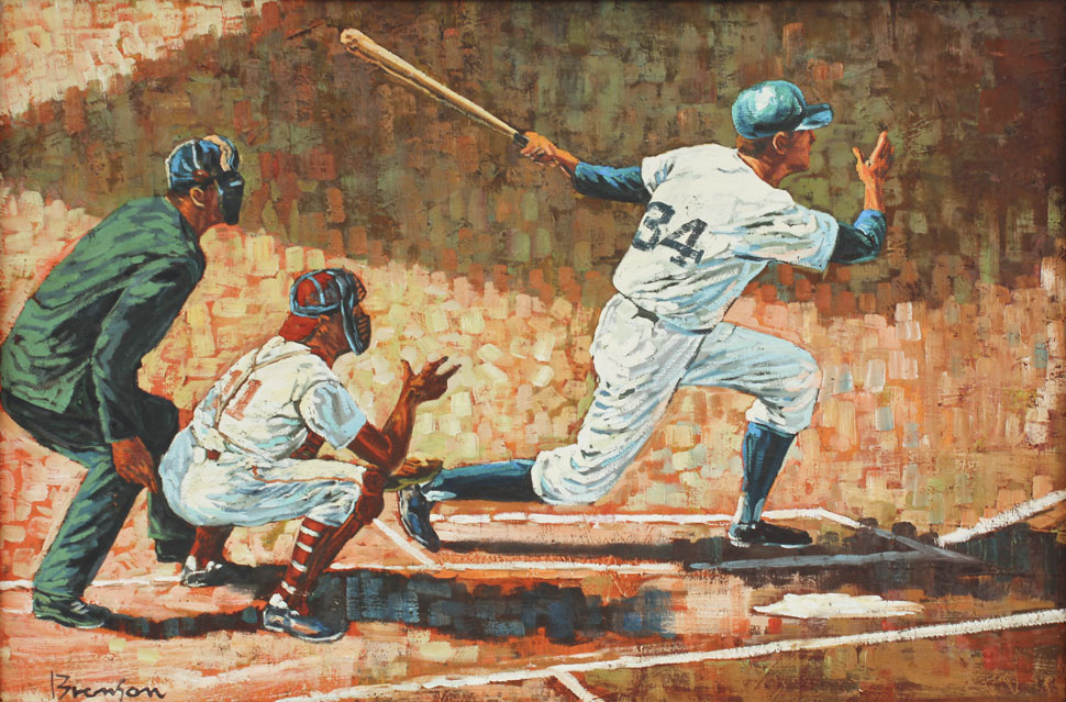 BASEBALL ILLUSTRATION PAINTING SIGNED BRENSON: Oil/Canvas, 24'' x 36'', signed lower left, wooden frame, 25'' x 37''.