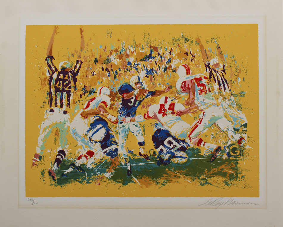 NEIMAN, Leroy, (American, 1927-): ''Touchdown'', Football Game, Serigraph, 25 1/4'' x 31 3/4'' with margins, pencil signed lower right, numbered 294/300 lower left, image size 19'' x 26'', framed, 30'' x 36''.