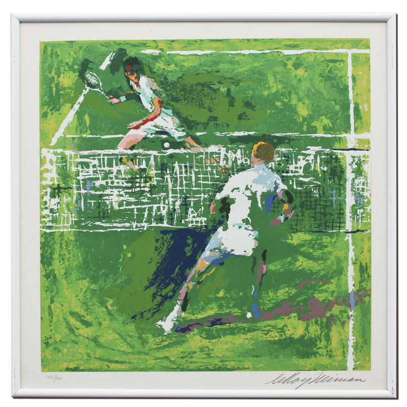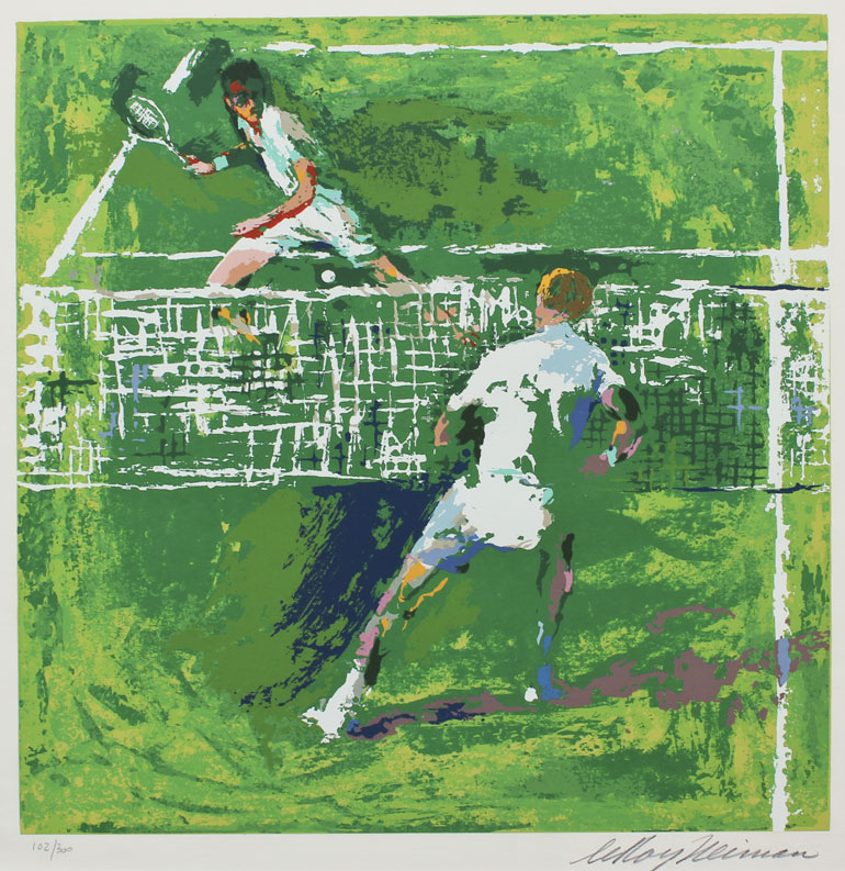 NEIMAN, Leroy, (American, 1927-): Tennis Players, Serigraph, sight size 15 1/2'' x 15 1/2'', pencil signed lower right, numbered 102/300 lower left, painted metal frame, 16 1/4'' x 16 1/4''. Not examined out of the frame.