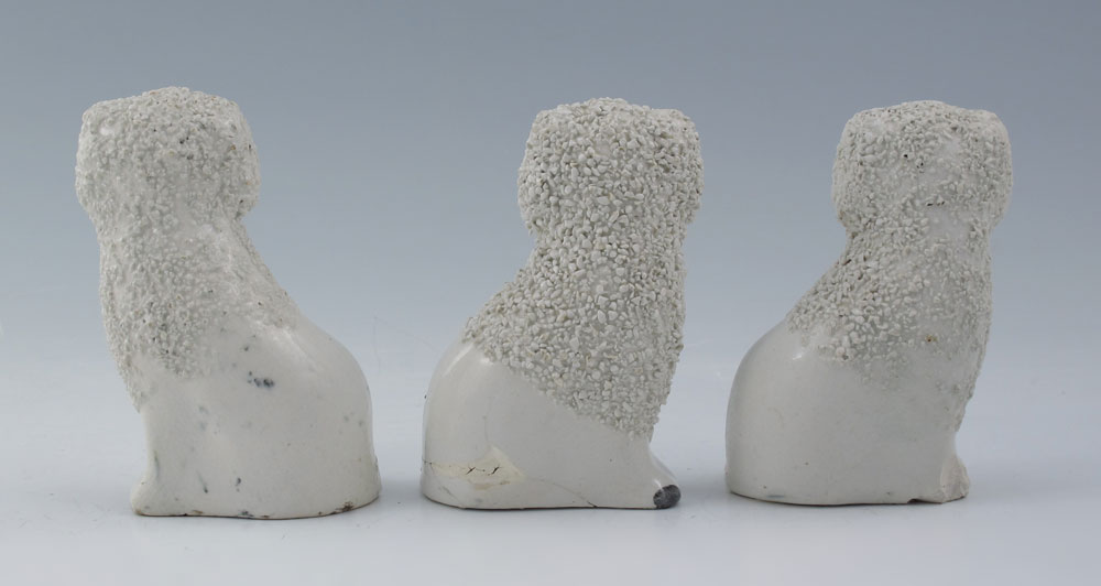 CONDITION: Note firing flaws on larger dogs, chips to bases on all 3 smaller dogs.