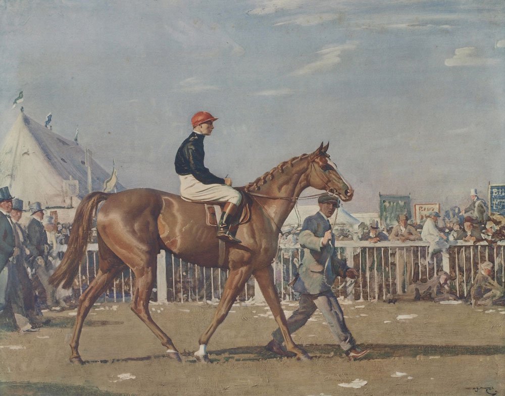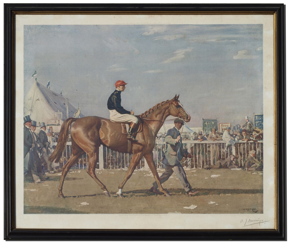 MUNNINGS, Alfred James, (British, 1878-1959): Horse and Jockey, Lithograph, published by Frost and Reed, 1924, pencil signed lower right, sight size 19 1/2'' x 23 3/4'', blindstamp lower left 'Fine Art Trade Guild', framed, 21 1/2'' x 26''.