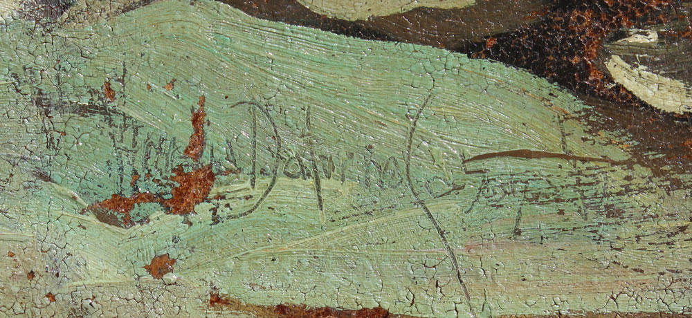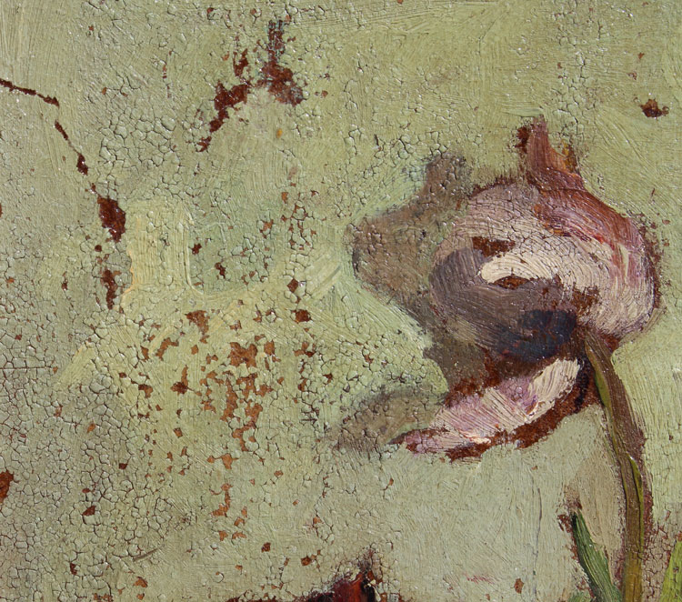 CONDITION: Bubbling and paint fleck throughout with scattered flecks of paint loss.