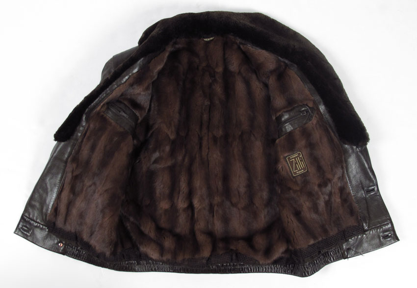 ZILLI LUXURY MENS FUR LINED LEATHER JACKET: Made in France of the softest leather. Double breasted, mink lining. Small to medium in size.