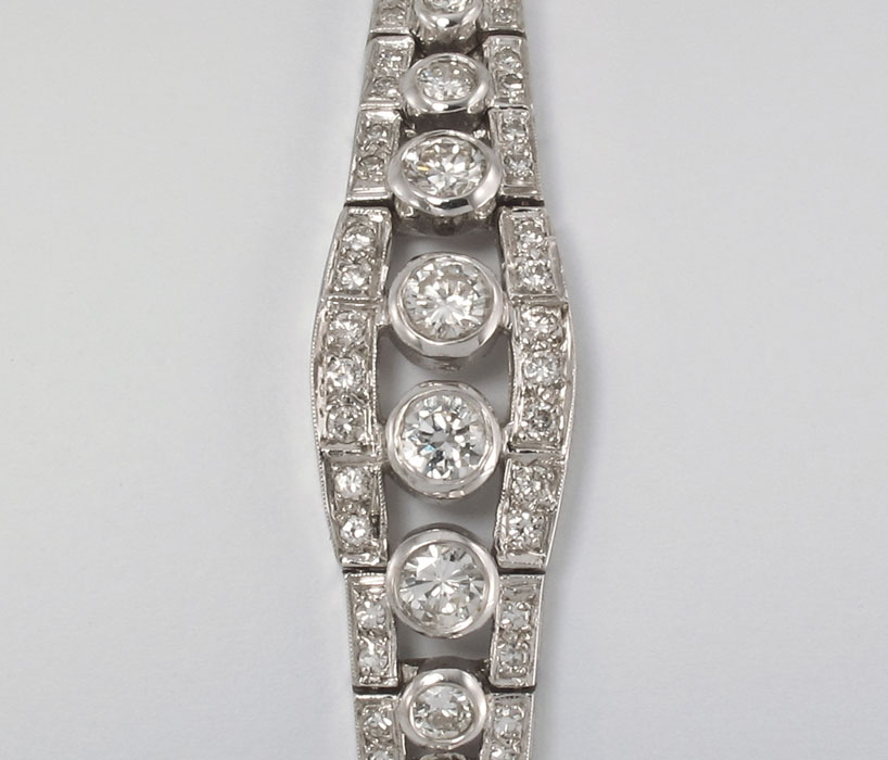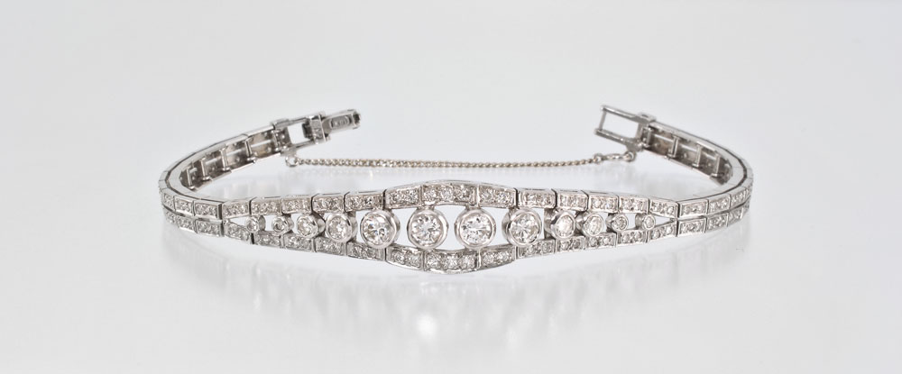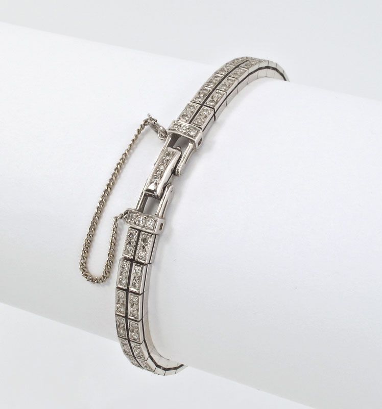 3 CTW DIAMOND BRACELET: 14K white gold bracelet contains 12 round brilliant diamonds measuring 1.70 mm - 4 mm. and 146 round single cut and brilliant cut diamonds, 1.25 mm - 1.7 mm., averaging VS in clarity and H-I in color. The diamonds are prong set, Locking closure with hinged safety clasp. Length 7 1/4''. Weight 17.6 grams. Sold with current Florida Diamond Appraisers GIA graduates appraisal for $7,950.