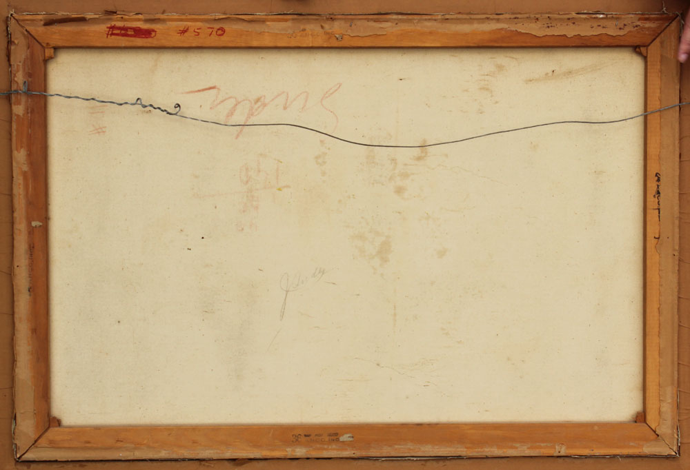 CONDITION: Relined, stretcher wear, abrasion in lower left quadrant.