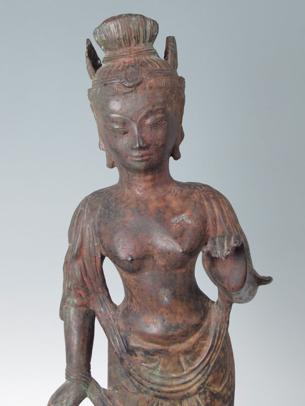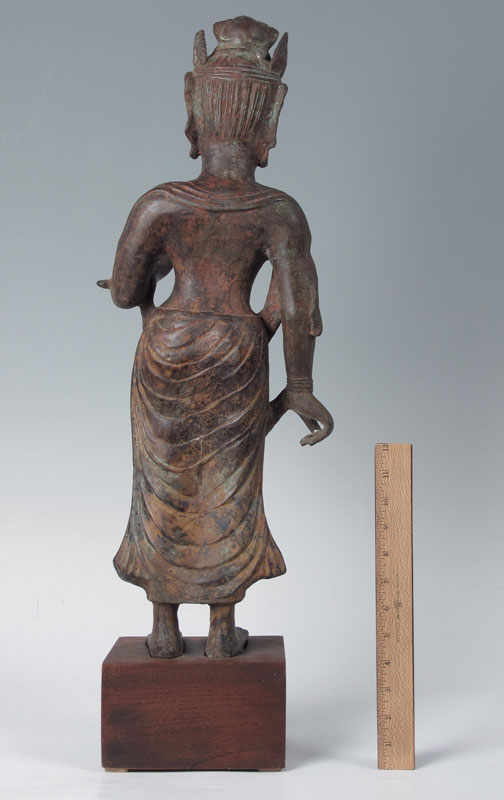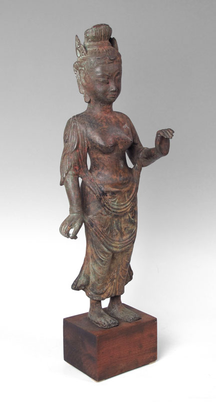 METAL CLAD BUDDHIST FIGURE: Traces of paint remain. Approx. 28 1/2'' tall. 20th C.