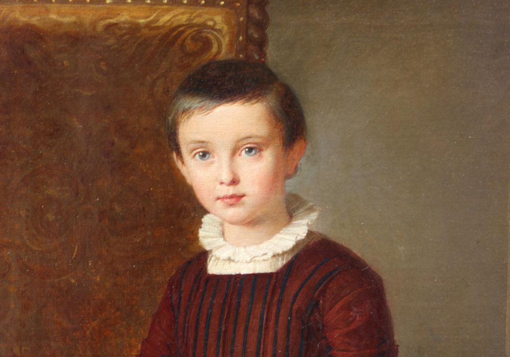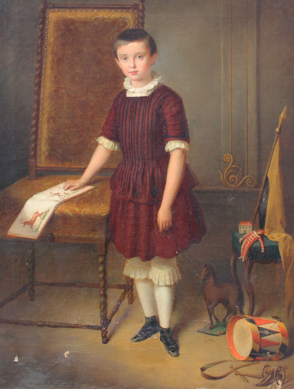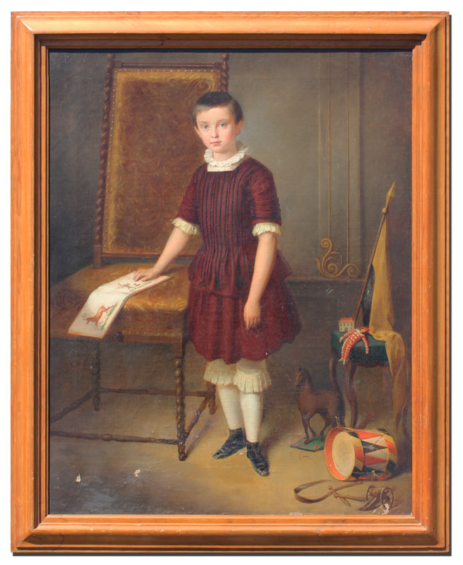 VERY GOOD 19TH CENTURY PORTRAIT OF A CHILD: Oil/Canvas, 24 7/8'' x 19 3/4'', no visible signature, period wooden frame, 28 1/2'' x 23 1/2''.