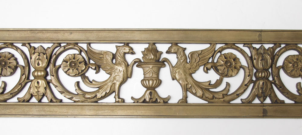 FIGURAL BRONZE ARCHITECTURAL PIECE FROM AN ELEVATOR: Salvaged from a New York City elevator, featuring figural birds and floral design. Measures 62'' l. x 6'' h.