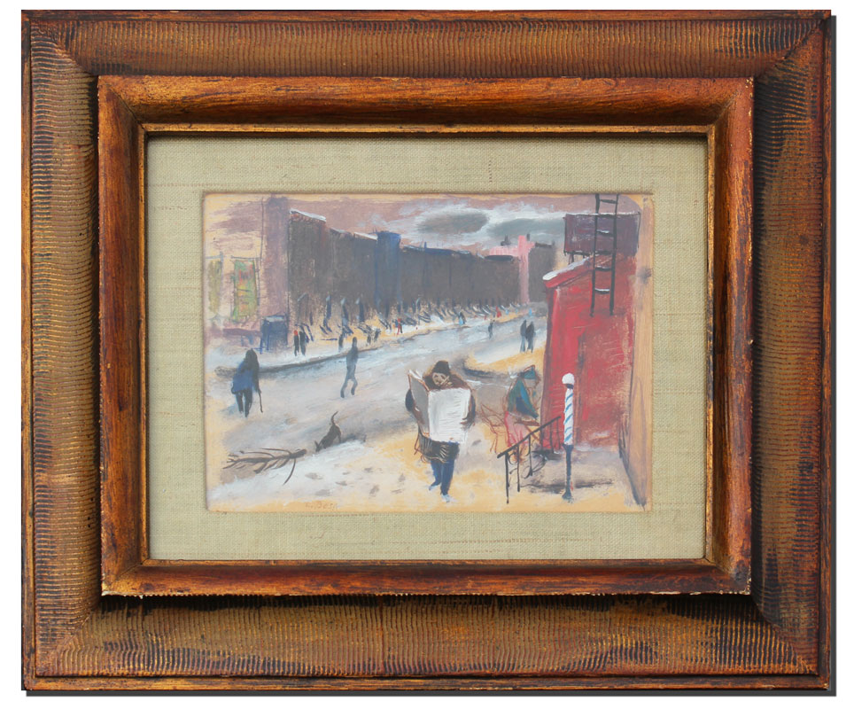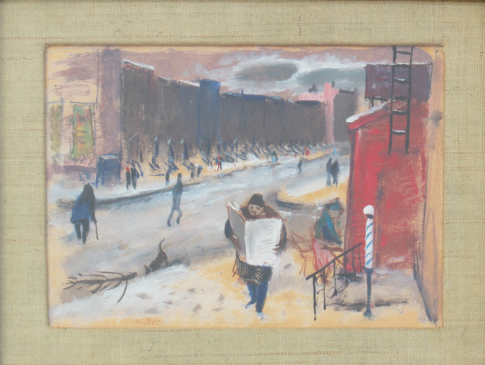 BOSA, Louis, (American, 1905-1981): New York City Street Scene with Figures, Watercolor and Gouache, sight size 5'' x 7'', signed lower left, gilded frame, 10 3/4'' x 12 3/4''.