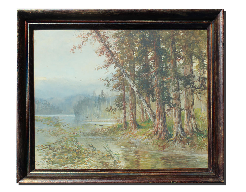 FISHER, Hugo A., (American, 1854-1916): Wilderness River Landscape in the Backwaters, Watercolor and Gouache, sight size 19 1/2'' x 25 1/2'', signed lower left, encased in painted frame, 23 1/2'' x 29 1/2''.