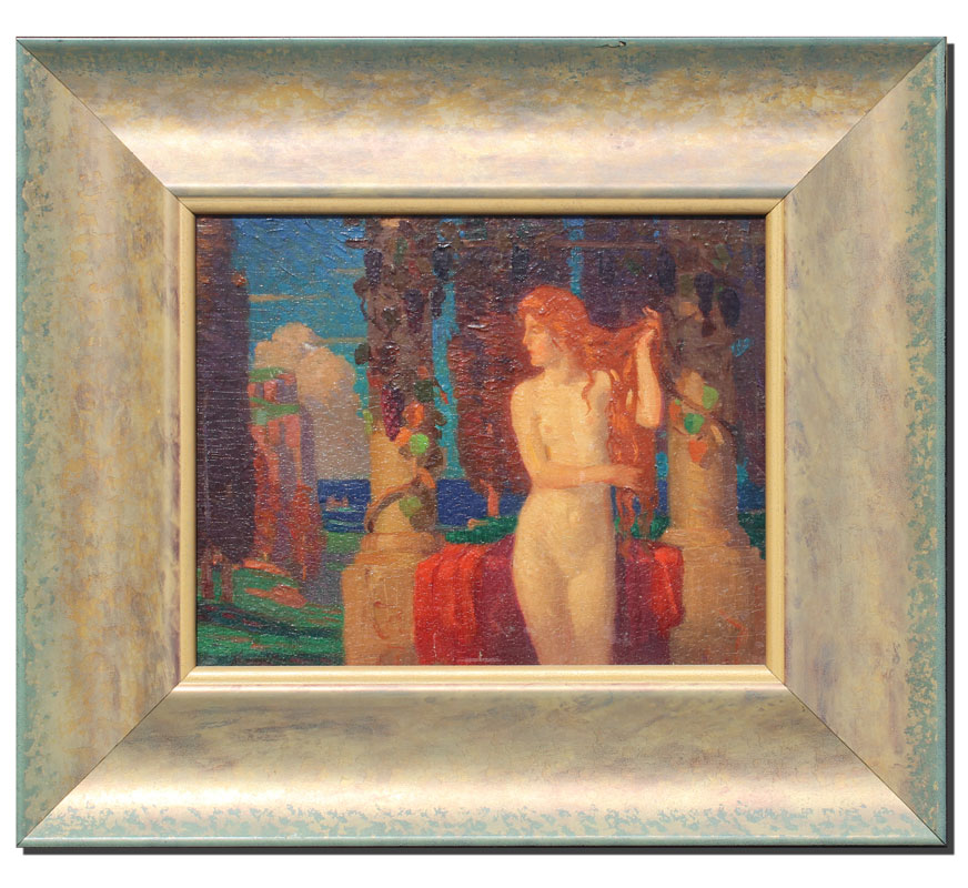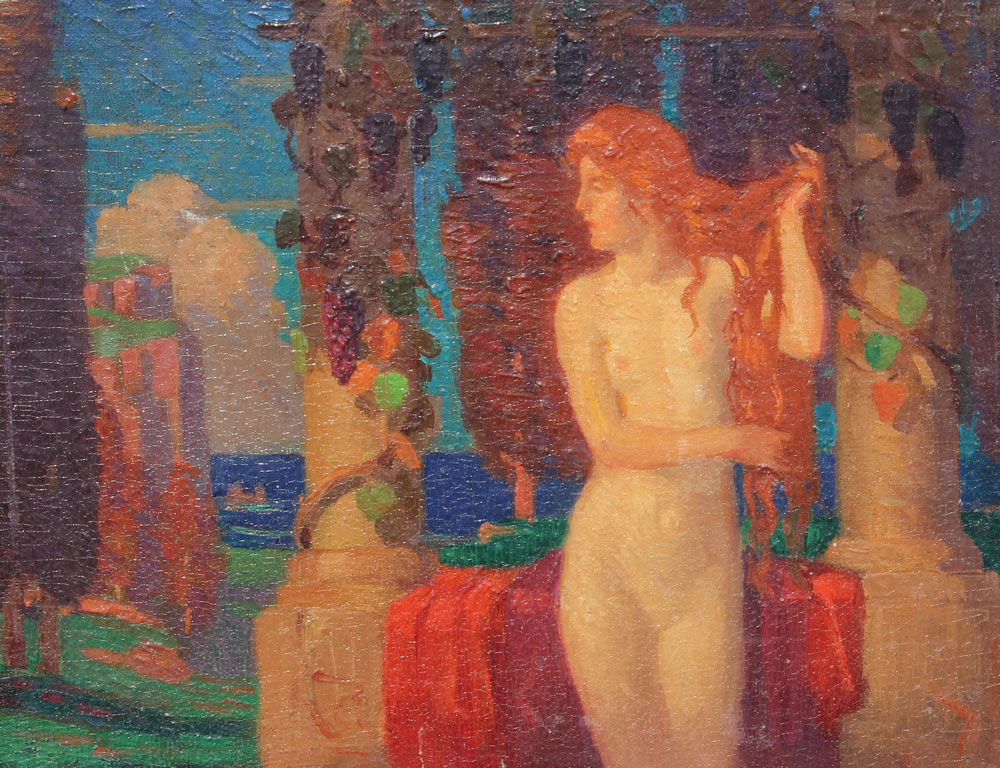 MACGILVARY, Norwood, (1874-1949): Classical scene with Nude Female Figure, OIL/CanvasBoard, 9 3/8'' x 7 1/2'', signed lower left, framed, 14'' x 12''.