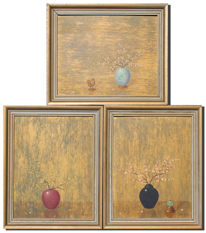 TORAN, Alphonso, (American, 1896-1965): 3 Oriental Motif Floral Still Lifes, Oil/Board, 10'' x 8'', all signed, in matching frames, 12'' x 10''.