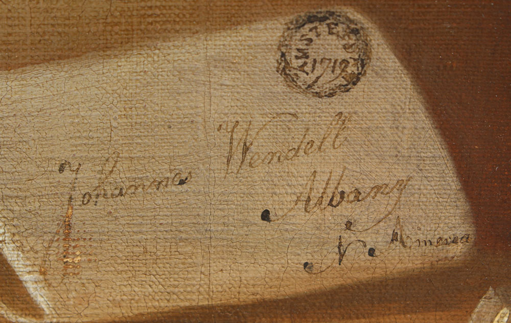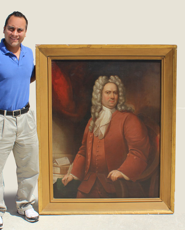 EARLY PORTRAIT PAINTING POSSIBLY JOHANNES WENDELL: OIL/Canvas, 45 1/2'' x 37 3/8'', Johannes Wendell was Justice of the Peace and Mayor of Albany, New York, gold gilt frame, overall approx. 56 3/8'' x 46'' x 3''d.