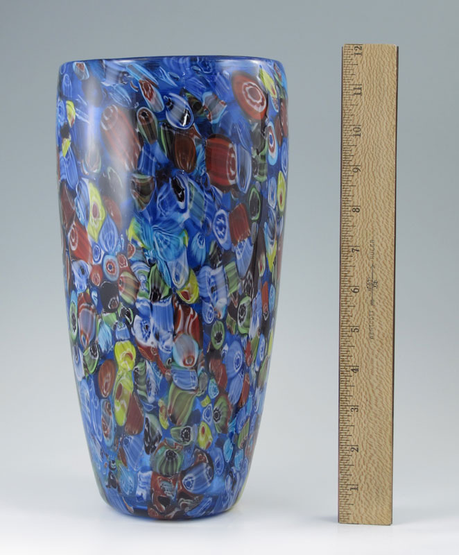 MURANO MILLEFIORI VASE: Original label on base. 11 3/4'' h. x 6''.
