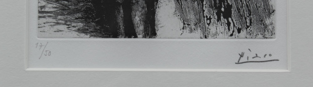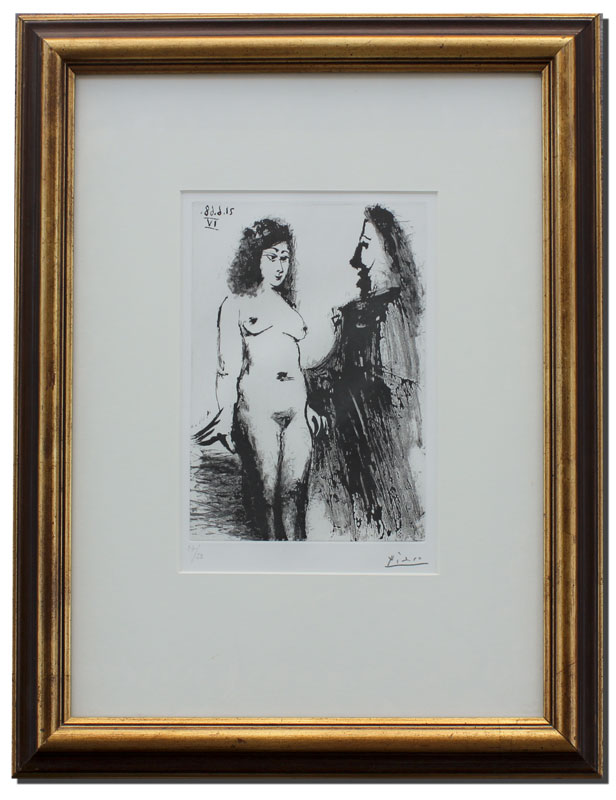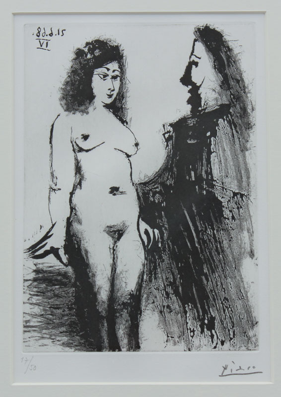 PICASSO, Pablo, (Spain, 1871-1973): ''Jeune Prostituee et Mousquetaire'' (from Series 347), Aquatint, sight size 9'' x 6 1/4'', 13 5/8'' x 11 1/8'' with margins, signed lower right, #'d 17 of 50 lower left, framed, 18 1/2'' x 14 1/2''.