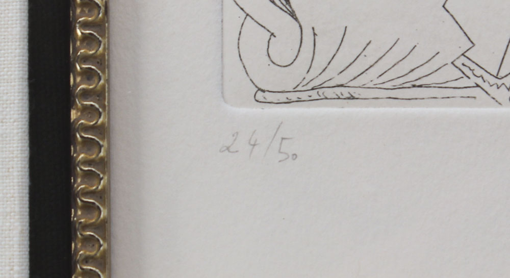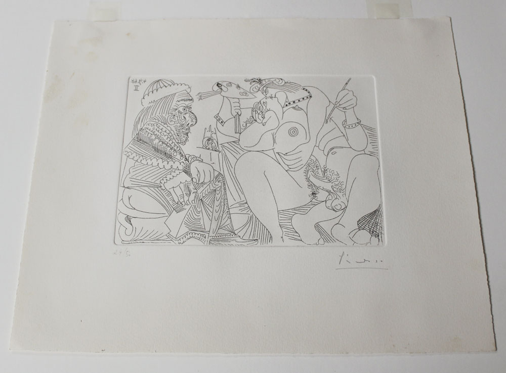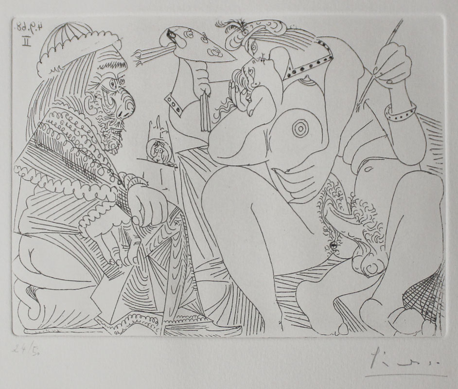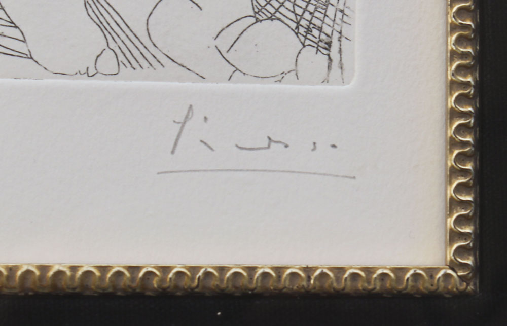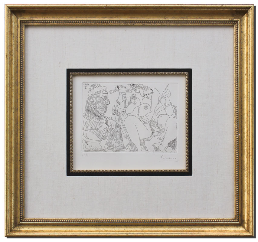 PICASSO, Pablo, (Spain, 1871-1973): ''Raphael et la Fornarina XVI'' (from Series 347), Etching, sight size 7 1/2'' x 9 1/2'', 11 1/8'' x 13 1/2'' with margins, pencil signed lower right, #'d 24 of 50 lower left, gilded frame, 18 3/4'' x 20 1/2''.
