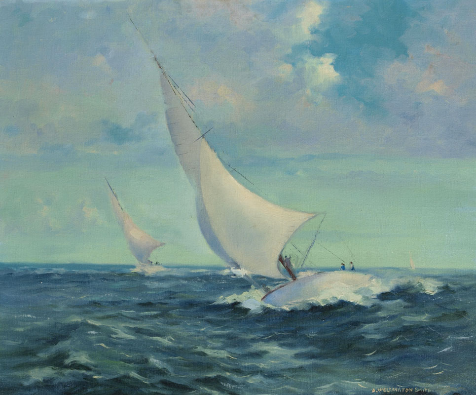 SMITH, Arthur Wellington, (American, 1917-1988): Yachting Race, Oil/Canvas, signed lower right, carved and gilded frame, 29 1/2'' x 33 1/2''.