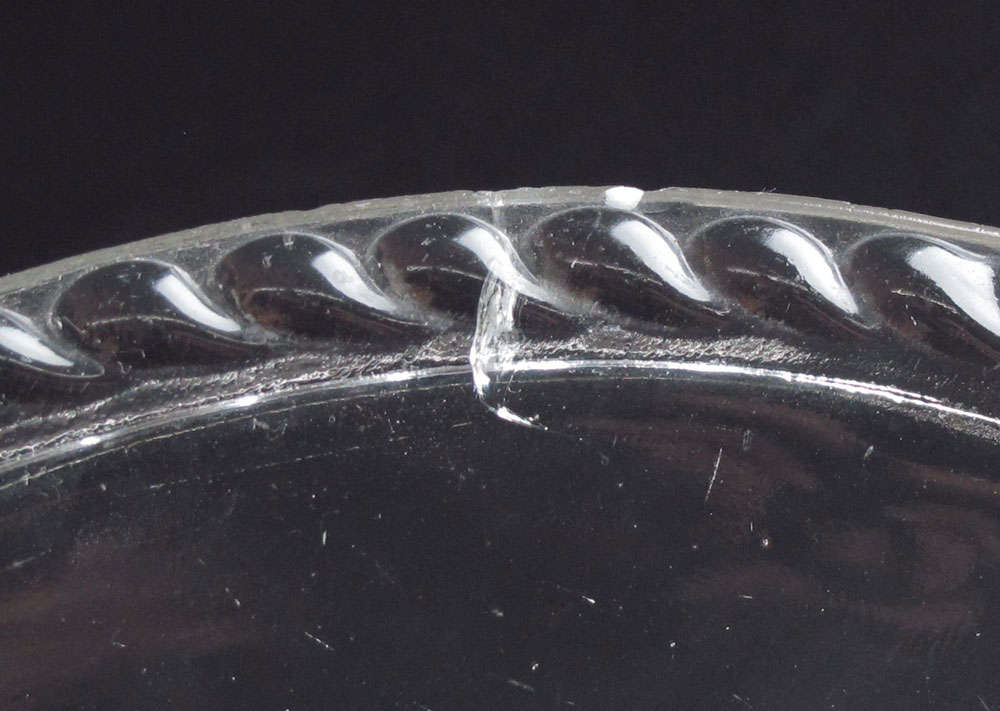CONDITION: Note abrasion on lid of bowl, crack on larger tray.