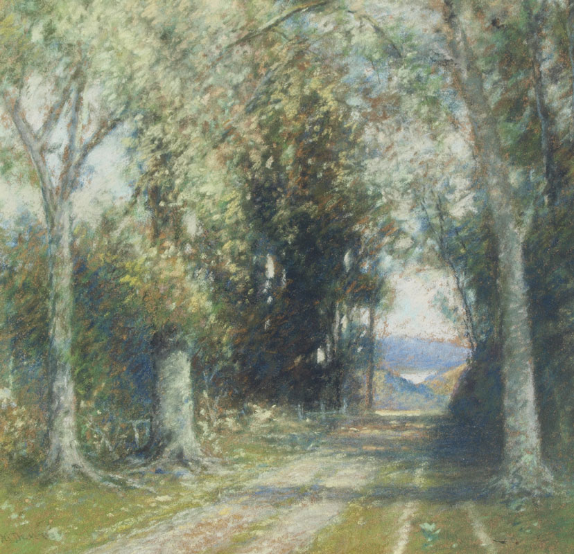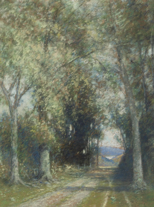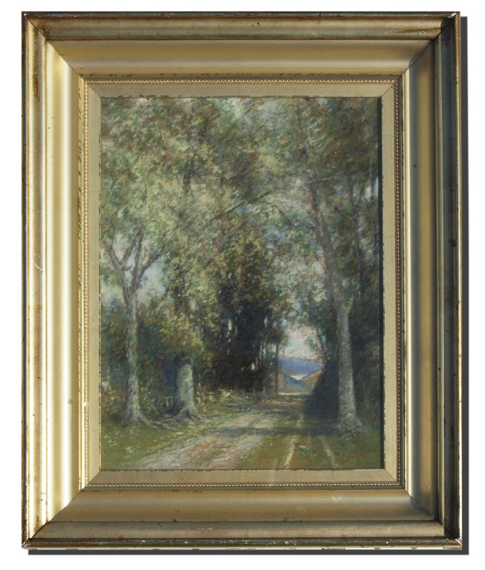 DENNIS, James M., (American, 1840-1918): Sun-Lit Tree Lined Country Road, Pastel, sight size 13'' x 10 1/2'', signed lower left, encased in period gilded frame with wear, 18 1/2'' x 15 1/2''.