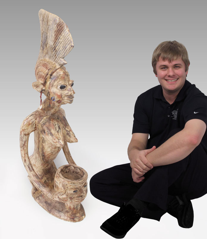 CARVED AFRICAN YORUBA FIGURE: 45'' x 13'' x 19''