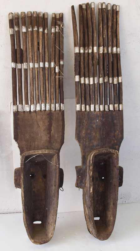 PAIR OF CARVED AFRICAN MARKA MASKS: 68'' x 15'' x 13''