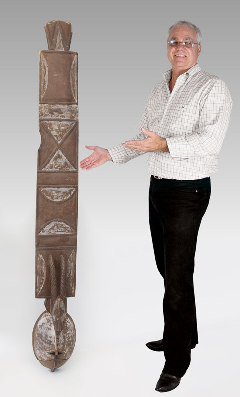 CARVED AFRICAN MASSI PLANK MASK: 68'' x 8'' x 5''