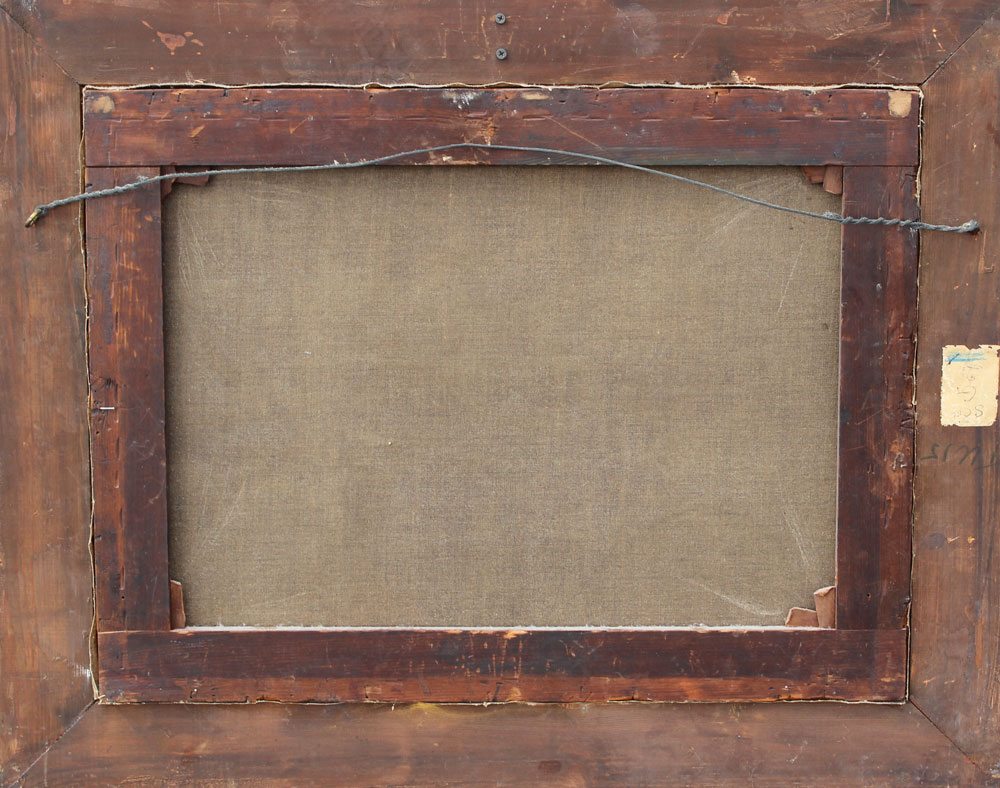 CONDITION: Relined, stretcher bar wear, with scattered inpaint throughout, repair to tears, needs cleaning.